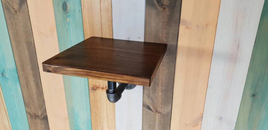 Wooden Shelf with Gas Pipe Rail - Custom Length and Depth