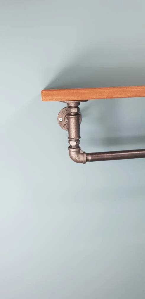 A versatile and custom built industrial style accessory. A thinner shelf might suit a bathroom, slightly deeper could suit a kitchen (think hanging pans and storage jars), deeper still could serve as an entryway storage unit for hanging coats and scarves.